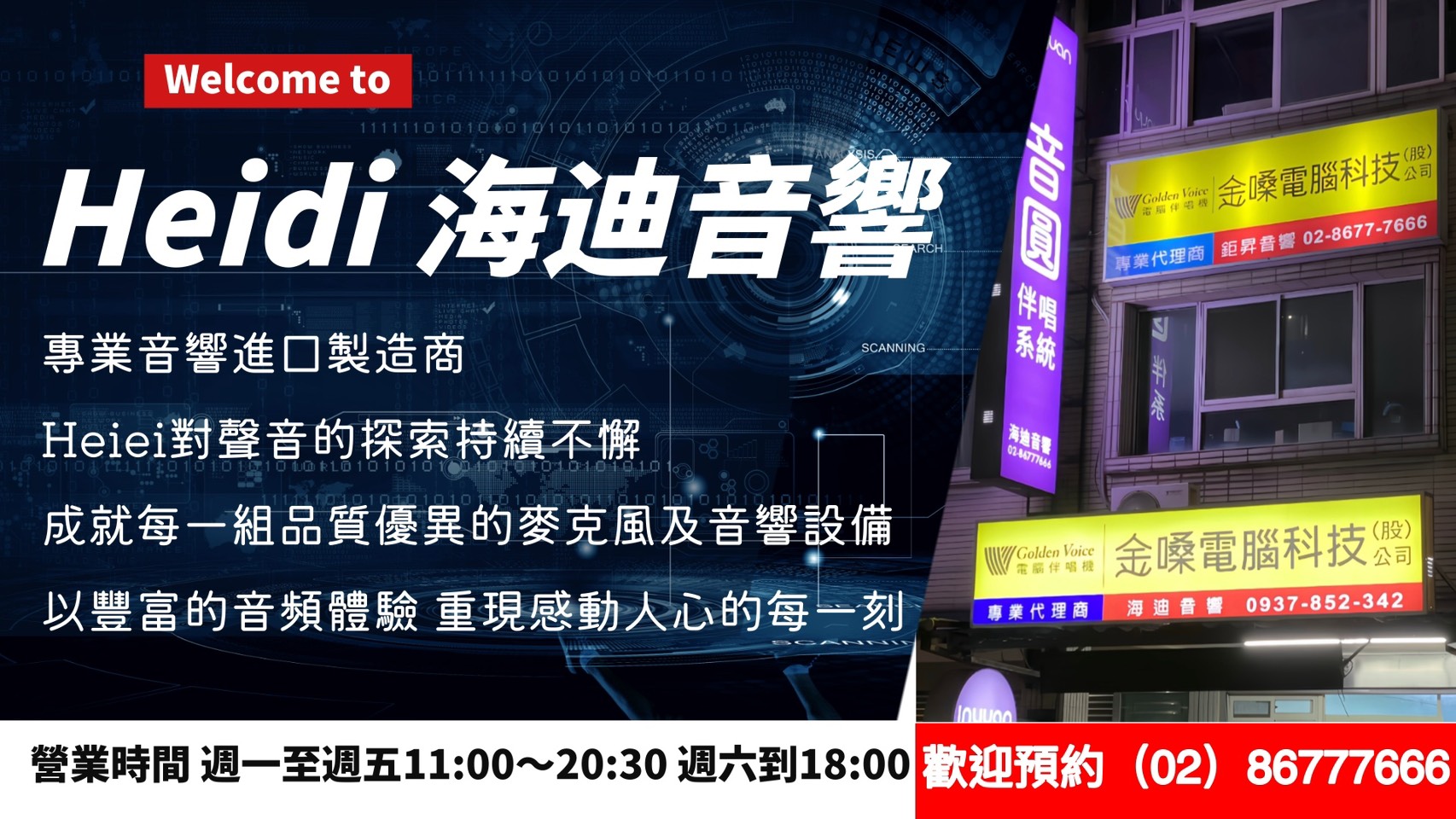 本公司從事音響批發買賣服務多年,經驗豐富,除了批發零售自己品牌的音響設備以外,還是音圓及金嗓伴唱點歌機簽約代理商,值得您選擇與信賴!海迪音響商行在新北、桃園服務,提供全新與中古二手音響設備的多種選擇!想找經典型號、想升級現有系統,或想用高CP值入門,都能在這裡配到合適方案!